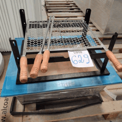Leilão de Base Para Churrasqueira, Suporte, Grelha E 02 Espetos Com Avaria. Loc. Mezanino