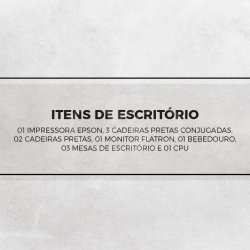 Lote 0001: MATERIAIS DIVERSOS. VARA: 2 VARA DO JUIZADO ESPECIAL CÍVEL DO FORO REGIONAL I - SANTANA. Lance Inicial: R$ 1. 200, 00. Lance Atual: R$ 0, 00. Incremento: R$ 100, 00. Dê seu lance. 03 CADEIRAS PRETAS CONJUGADAS. 02 CADEIRAS PRETAS. 03 MESAS DE ESCRITÓRIO. 01 CPU. IMPRESSORA EPSON. MONITOR FLATRON. BEBEDOURO. Onde visitar?. RUA MILTON DA ROCHA, 396B - VILA SABRINA, SAO PAULO / SP. Processo n XXXXXX. 2024. 8. 26. 0001. 1 Leilão: 02/ 10/ 2025 às 11: 00h ( horário de Brasília) - Lance mínimo: R$ 1. 200, 00 ( um mil e duzentos reais).. 2 Leilão: 24/ 10/ 2025 às 11: 00h ( horário de Brasília) - Lance mínimo: R$ 960, 00 ( novecentos e sessenta reais).. Forma de pagamento: À vista.. PROCESSO 00151395220248260001. VARA / COMARCA 2 VARA DO JUIZADO ESPECIAL CÍVEL DO FORO REGIONAL I - SANTANA.