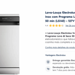 LEILÃO EXTRAJUDICIAL ! DESCRIÇÃO DO PRODUTO: LAVA- LOUÇA ELECTROLUX 14 SERVIÇOS INOX COM PROGRAMA LAVA & SECA 50 MIN ( LS14E) 127V VALOR DO LOTE: R$ 6. 479, 20 FORMA DE PAGAMENTO : EXCLUSIVAMENTE À VISTA