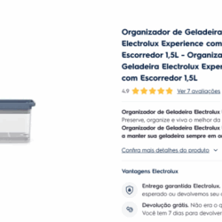 Lote 123 LEILÃO EXTRAJUDICIAL ! DESCRIÇÃO DO PRODUTO: ORGANIZADOR DE GELADEIRA ELECTROLUX EXPERIENCE COM ESCORREDOR 1, 5L VALOR DO LOTE: R$ 31, 92 FORMA DE PAGAMENTO : EXCLUSIVAMENTE À VISTA