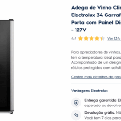 Leilão de Lote 037 - Adega De Vinho Climatizada Electrolux 34 Garrafas 127v