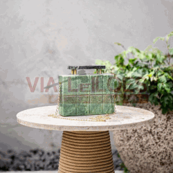BOLSA ESMERALDA & MDASH; QUARTZITO EMERALD GREEN. UMA JOIA LAPIDADA EM QUARTZITO EMERALD GREEN, SÍMBOLO DE FORÇA E NATURALIDADE. COM VEIOS ORGÂNICOS E TONALIDADES QUE REMETEM ÀS FLORESTAS BRASILEIRAS, ESSA PEÇA CELEBRA A ELEGÂNCIA ATEMPORAL DAS ROCHAS NACIONAIS. DETALHES EM METAL DOURADO TRAZEM SOFISTICAÇÃO E LEVE CONTRASTE À TEXTURA BRUTA DA PEDRA. UM ÍCONE DA NATUREZA TRANSFORMADO EM DESIGN.. MATERIAL: QUARTZITO EMERALD GREEN / ALÇA EM CORRENTE METÁLICA NA COR DOURADA / FECHO SUPERIOR EM QUARTZITO E MATERIAL METÁLICO NA COR DOURADA.. TAMANHO: COMPRIMENTO 0, 20 X LARGURA 0, 06 X ALTURA 0, 15. PESO: 3, 8 KG..