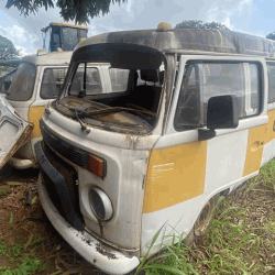 1. 01 VOLKS KOMBI, SEM IDENTIFICAÇÃO, COR BRANCA COM FAIXA AMARELA, PARABRISA QUEBRADO, SEM MOTOR..