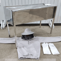 Leilão de ( B162774) Lote Com 01 Mesa Desoperculadora P/ Apicultura Até 32 Quadros Aba Acompanha Peneira / Traje / Luva