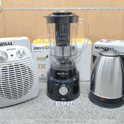 ( B161236) LOTE COM 01 AQUECEDOR DE AR A- 08 3 EM 1 COM 2 NÍVEIS DE AQUECIMENTO E FUNÇÃO CIRCULAR COR CINZA MONDIAL 1800W 110V * 24A02 ( AVARIAS), 01 CHALEIRA ELÉTRICA 1, 7 LITROS CONTRAST - CEL388 CADENCE COR PRETO 1200W 110V * 236, 01 LIQUIDIFICADOR TURBO BLQ970P 900W 2, 6 LITROS BRITÂNIA 110V * J5930. PRODUTO( S) LOGÍSTICA REVERSA, REPAROS DE AVARIA( S) SE NECESSÁRIOS POR CONTA DO ARREMATANTE, SEM GARANTIA ( VENDIDO NO ESTADO).. INFORMAÇÕES IMPORTANTES:. FOTOS MERAMENTE ILUSTRATIVAS;. 5% REFERENTE À COMISSÃO DO LEILOEIRO ACRESCIDO AO VALOR DA ARREMATAÇÃO;. DESPESAS ADMINISTRATIVAS PARA MATERIAIS ( DESPESA DE ORGANIZAÇÃO E DEPÓSITO DE BENS) CONSULTE A TABELA DE VALORES NAS CONDIÇÕES DE VENDA ;. ABERTURA P/ LANCES: 27/ 03/ 2026 14: 08. LEILOEIRO: SÉRGIO VILLA NOVA DE FREITAS. MODALIDADE: SOMENTE ONLINE. LOCAL DO LEILÃO: INTERNET ( SÃO PAULO/ SP)