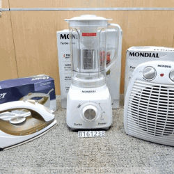 Lote 169 ( B161238) LOTE COM 01 AQUECEDOR DE AR A- 08 3 EM 1 COM 2 NÍVEIS DE AQUECIMENTO E FUNÇÃOCIRCULAR COR CINZA MONDIAL 1800W 110V * 24A02, 01 FERRO DE PASSAR A VAPOR ANTIADERENTE GCSTBS 5907- 057 CHAMPANHE 1600W OSTER 220V V206NK, 01 LIQUIDIFICADOR TURBO POWER MONDIAL 550W L- 99 WG 220V * 1801. PRODUTO( S) LOGÍSTICA REVERSA, REPAROS DE AVARIA( S) SE NECESSÁRIOS POR CONTA DO ARREMATANTE, SEM GARANTIA ( VENDIDO NO ESTADO).. INFORMAÇÕES IMPORTANTES:. FOTOS MERAMENTE ILUSTRATIVAS;. 5% REFERENTE À COMISSÃO DO LEILOEIRO ACRESCIDO AO VALOR DA ARREMATAÇÃO;. DESPESAS ADMINISTRATIVAS PARA MATERIAIS ( DESPESA DE ORGANIZAÇÃO E DEPÓSITO DE BENS) CONSULTE A TABELA DE VALORES NAS CONDIÇÕES DE VENDA ;. ABERTURA P/ LANCES: 27/ 03/ 2026 14: 08. LEILOEIRO: SÉRGIO VILLA NOVA DE FREITAS. MODALIDADE: SOMENTE ONLINE. LOCAL DO LEILÃO: INTERNET ( SÃO PAULO/ SP)