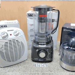 ( B161478) LOTE COM 01 AQUECEDOR DE AR A- 08 3 EM 1 COM 2 NÍVEIS DE AQUECIMENTO E FUNÇÃO CIRCULAR COR CINZA MONDIAL 1800W 110V 60HZ * 24A02, 01 ESPREMEDOR DE LARANJAS E FRUTAS EFFICIENT ECP10 ELECTROLUX COR PRETO FREQUÊNCIA 30W 220V 60HZ * 00896 ( FALTA PARTES), 01 LIQUIDIFICADOR L- 99- FB TURBO POWER 2, 2 L POTÊNCIA DE 550W COR PRETO MONDIAL 110V * 2254. PRODUTO( S) LOGÍSTICA REVERSA, REPAROS DE AVARIA( S) SE NECESSÁRIOS POR CONTA DO ARREMATANTE, SEM GARANTIA ( VENDIDO NO ESTADO).. INFORMAÇÕES IMPORTANTES:. FOTOS MERAMENTE ILUSTRATIVAS;. 5% REFERENTE À COMISSÃO DO LEILOEIRO ACRESCIDO AO VALOR DA ARREMATAÇÃO;. DESPESAS ADMINISTRATIVAS PARA MATERIAIS ( DESPESA DE ORGANIZAÇÃO E DEPÓSITO DE BENS) CONSULTE A TABELA DE VALORES NAS CONDIÇÕES DE VENDA ;. ABERTURA P/ LANCES: 27/ 03/ 2026 14: 08. LEILOEIRO: SÉRGIO VILLA NOVA DE FREITAS. MODALIDADE: SOMENTE ONLINE. LOCAL DO LEILÃO: INTERNET ( SÃO PAULO/ SP)