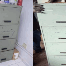BEM 02: 01 ( um) armário de aço com 4 gavetas, com arranhões e pintura desgastada.. Local para visitação. JORGE VITÓRIO ESPOLADOR, RUA JOSÉ LEITE DE CARVALHO, 74, JARDIM LILIAN, EM LONDRINA- PR..