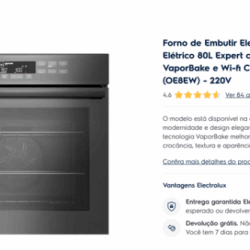 Leilão de Lote 084 - Forno De Embutir Electrolux Elétrico 80l Expert Com Vaporbake