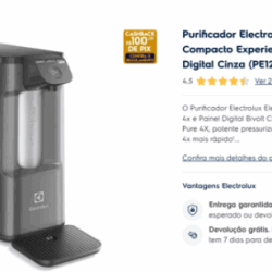 LEILÃO EXTRAJUDICIAL ! DESCRIÇÃO DO PRODUTO: PURIFICADOR ELECTROLUX ELETRÔNICO COMPACTO EXPERIENCE PURE 4X DIGITAL BRANCO ( PE12B) BIVOLT VALOR DO LOTE: R$ 463, 92 FORMA DE PAGAMENTO : EXCLUSIVAMENTE À VISTA VISITAÇÃO DOS BENS: ITENS DISPONÍVEIS PARA VISITAÇÃO NO DIA 15/ 12 ( SEGUNDA FEIRA ) MEDIANTE AGENDAMENTO PRÉVIO COM O LEILOEIRO, VIA TELEFONE OU WHATSAPP DO ESCRITÓRIO.